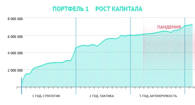 Он создает портфель и управляет им сам, а мы помогаем осваивать инструменты, разбираться в нюансах и принимать верные решения.